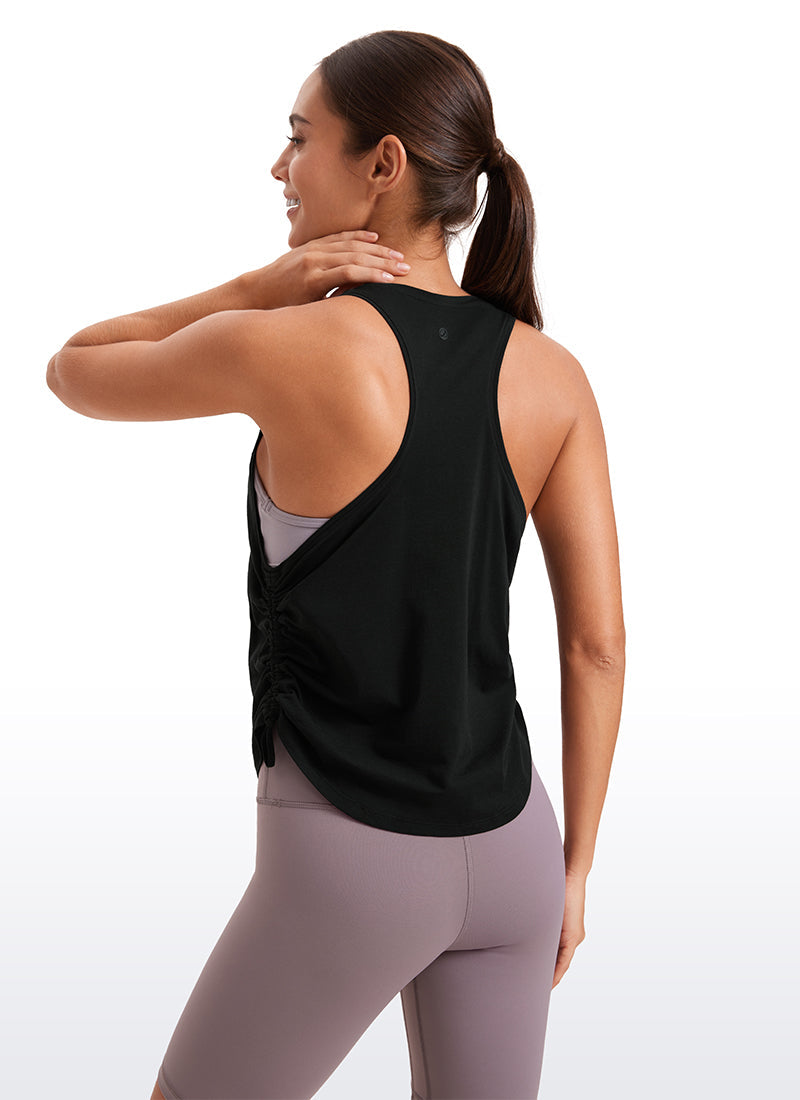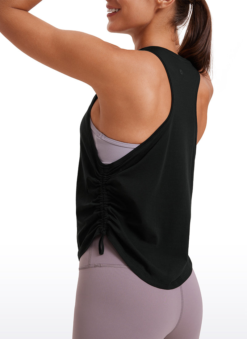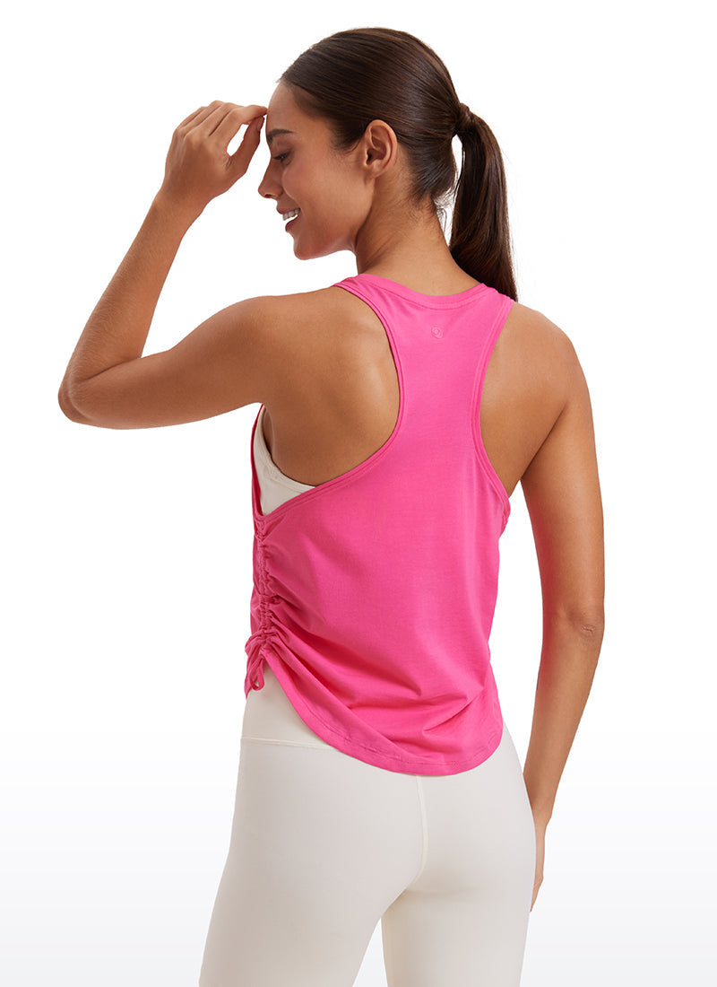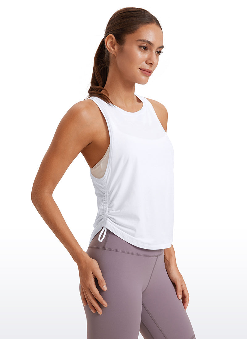 Pima Cotton collection is super soft and feels great against your skin, aiming to offer a comfortable feeling to you. Adjustable drawstring design provides variable length and a cute look. Racerback helps to move more freely and high crew neck adds coverage. Perfect for layering over your sports bra when workouts.
