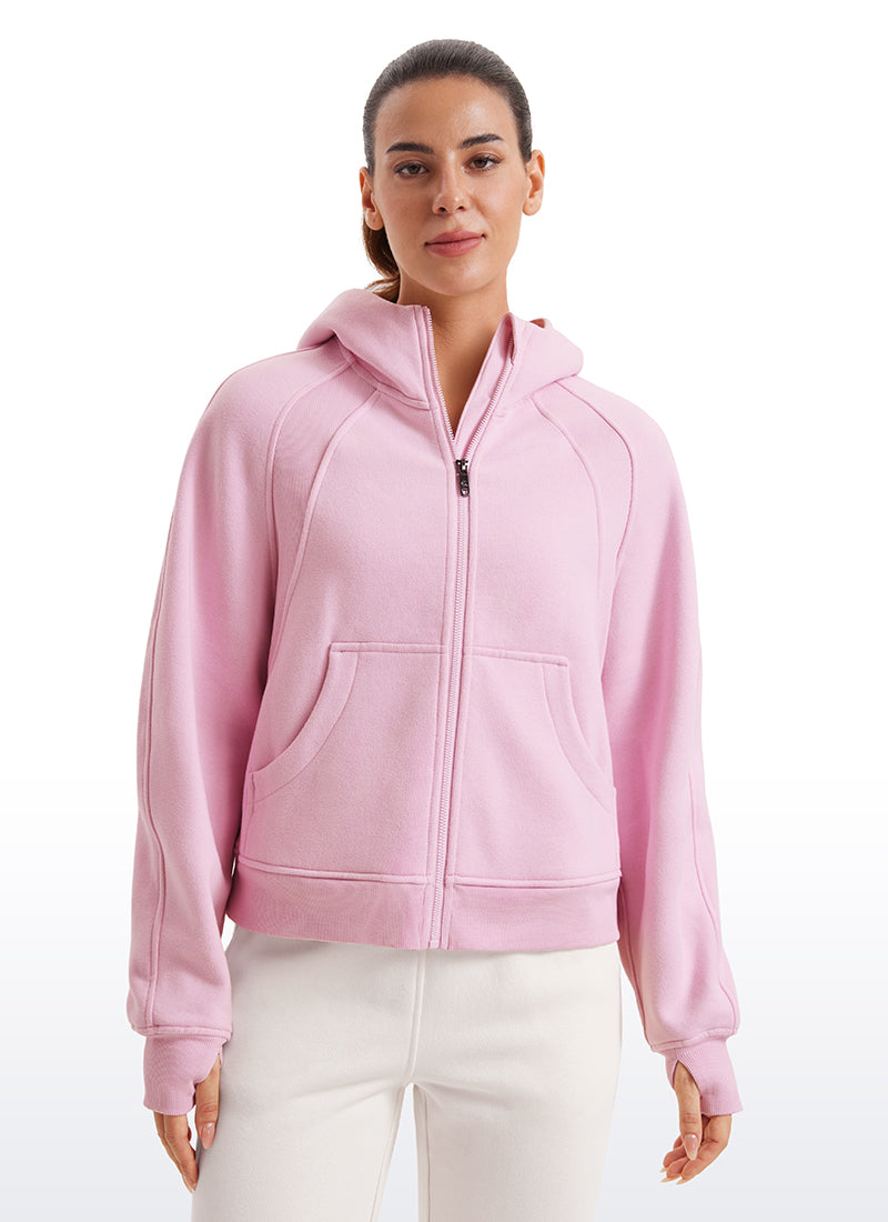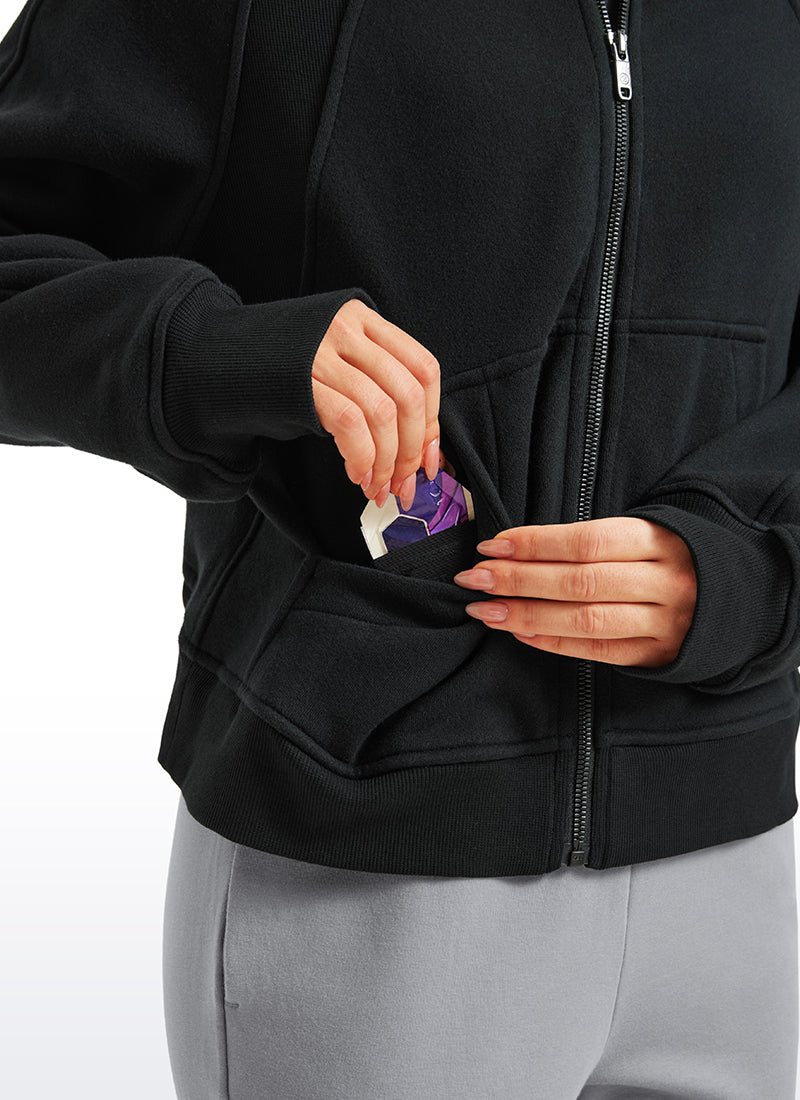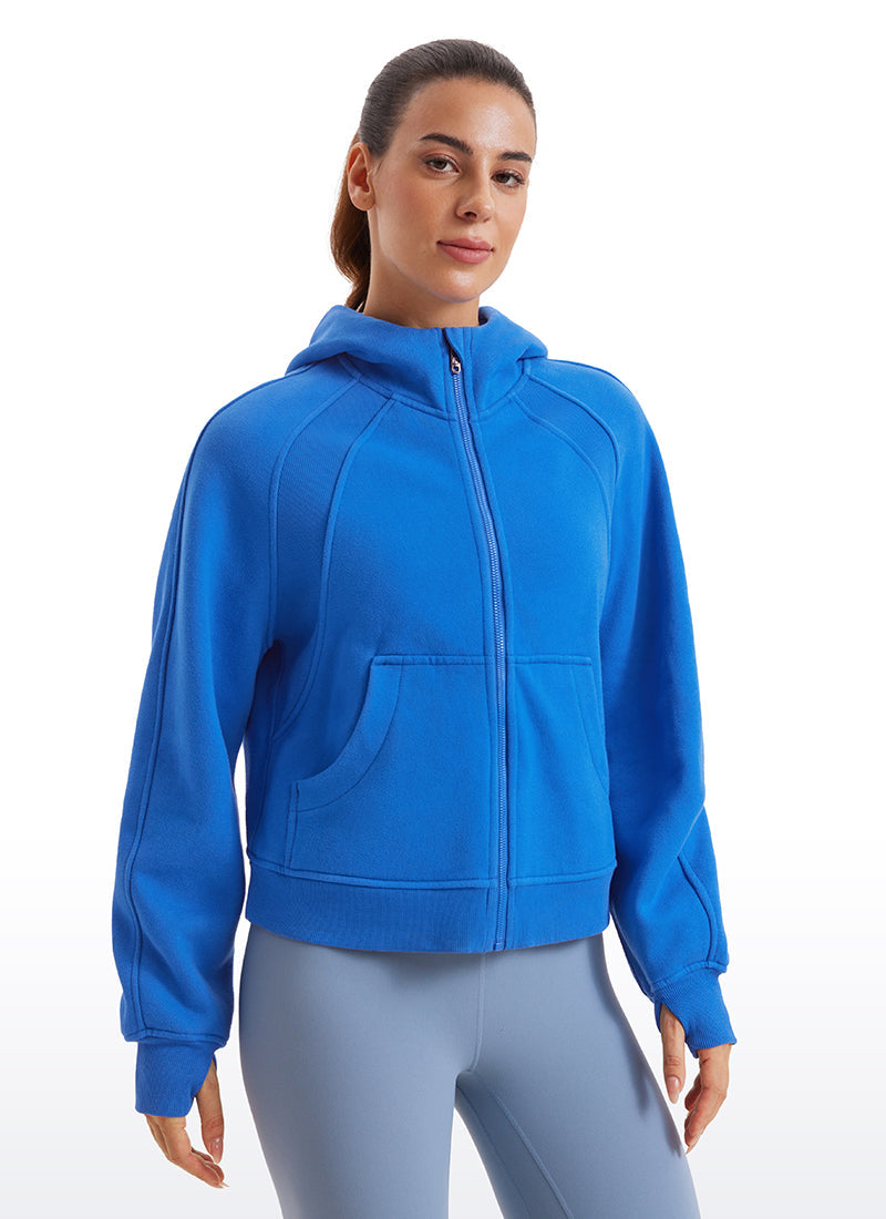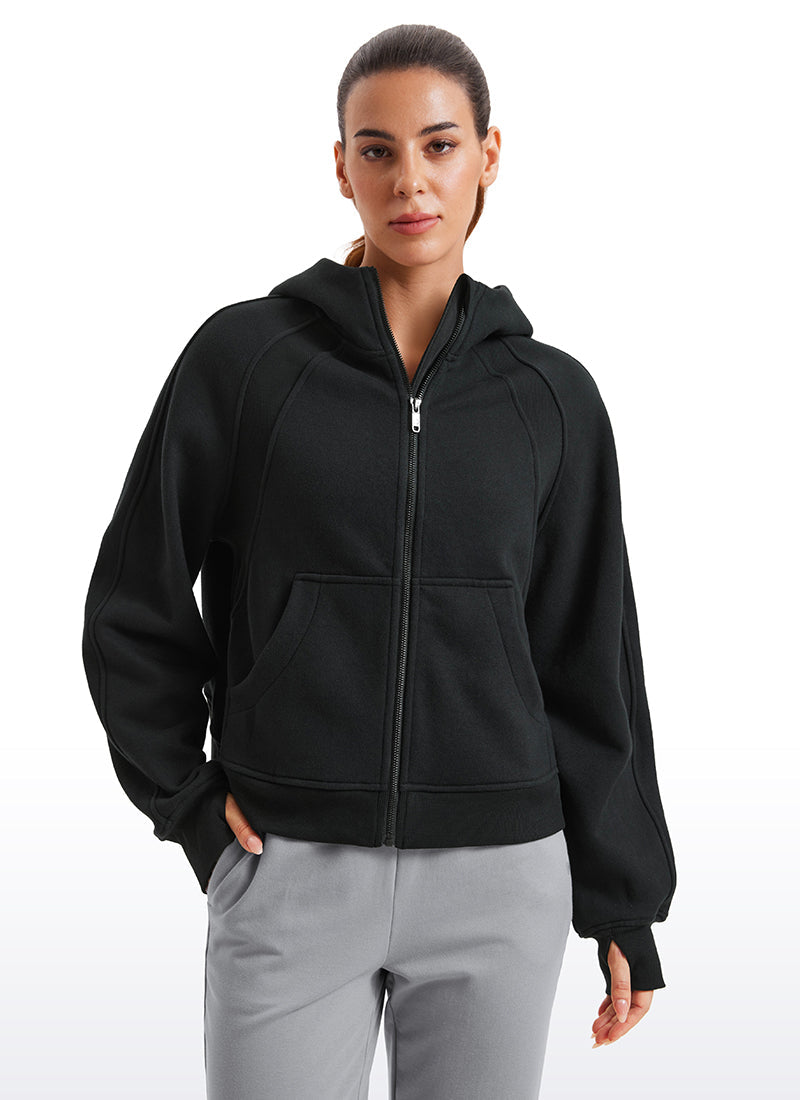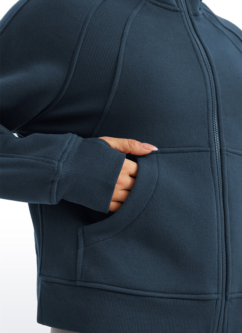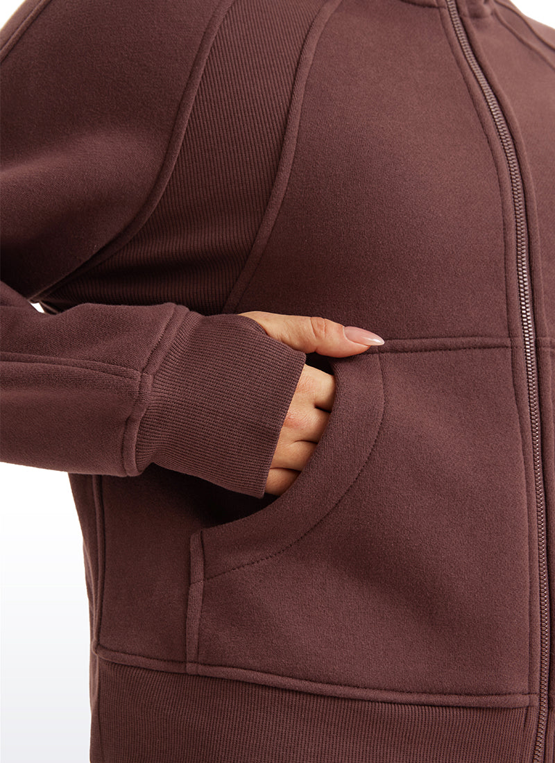 CRZ YOGA women's hoodies are refined with high-quality cotton blended fabrics and fleece lining, keeping you warm and comfortable in cold winter. Full-zip hoodies with high collars and thumb holes add athletic style and keep warm. Designed for daily outfit or lounging.