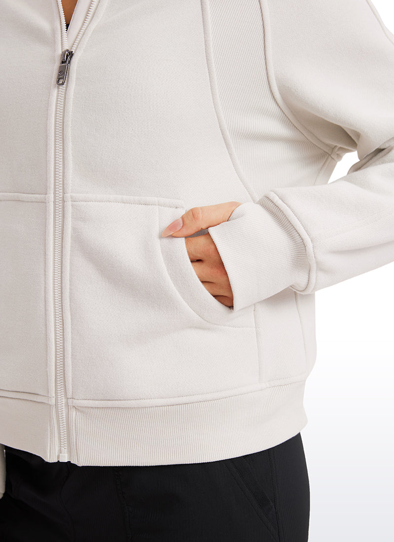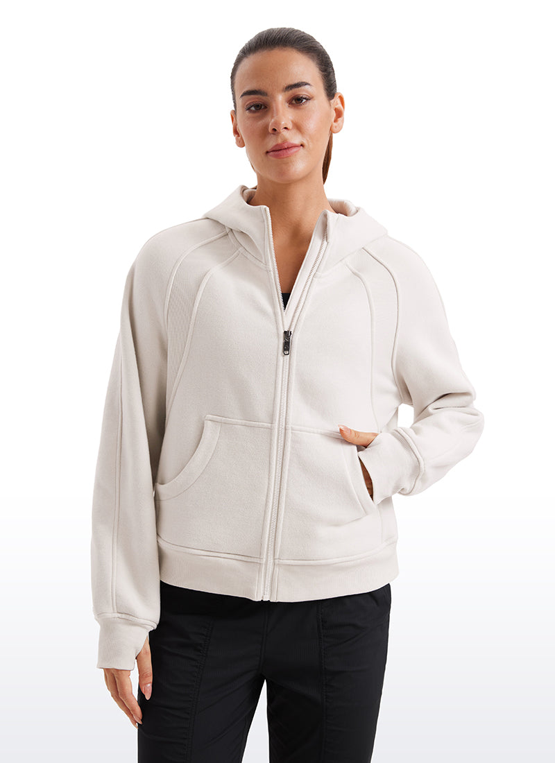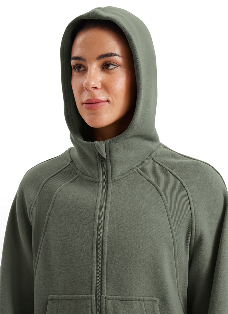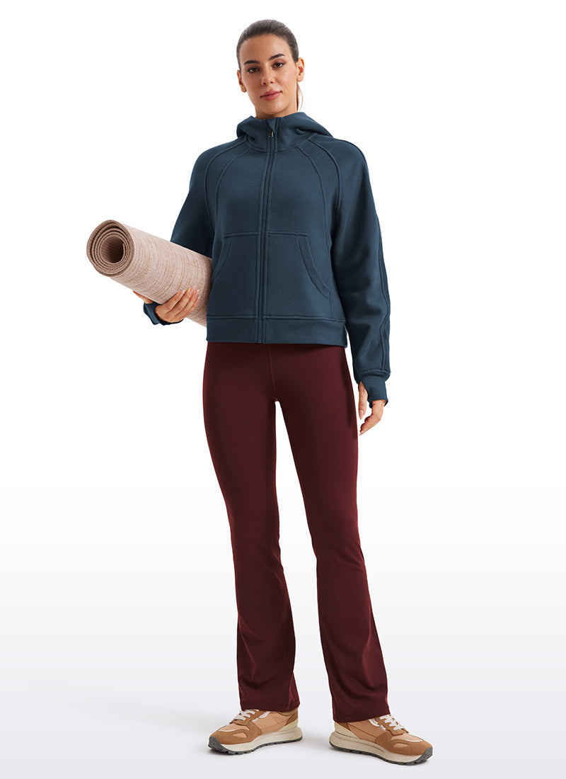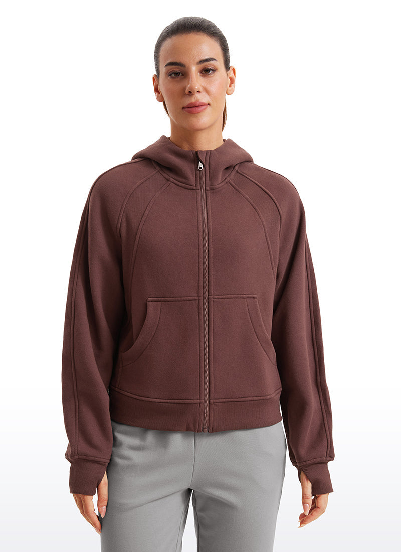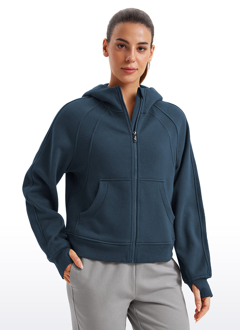 CRZ YOGA women's hoodies are refined with high-quality cotton blended fabrics and fleece lining, keeping you warm and comfortable in cold winter. Full-zip hoodies with high collars and thumb holes add athletic style and keep warm. Designed for daily outfit or lounging.